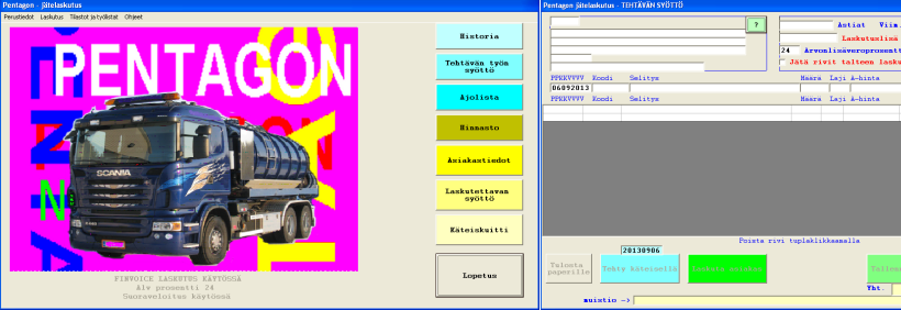 Laaja ohjelmisto alkaen ostotilauksista, tarjouksista, lähetyslistoista, käteiskuiteista, eräajolaskutuksesta päätyen tilastointiin. Usean käyttäjän verkko-ohjelmisto.